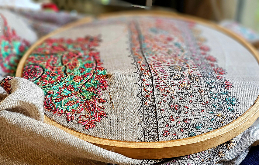 Текстиль ручной работы — вязаные свитера, скатерти, пледы с традиционными узорами народов России.